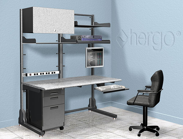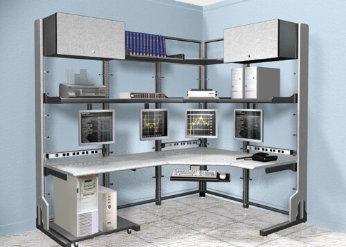 Ergonomic computer furniture can increase worker productivity. That’s why busy work environments demand Hergo’s Venice double frame workstation. As with all of our open rack systems, this rugged technical computer furniture configuration is specially designed with 1” vertical front and back slots. You can easily position and reconfigure equipment for optimal usability and comfort.